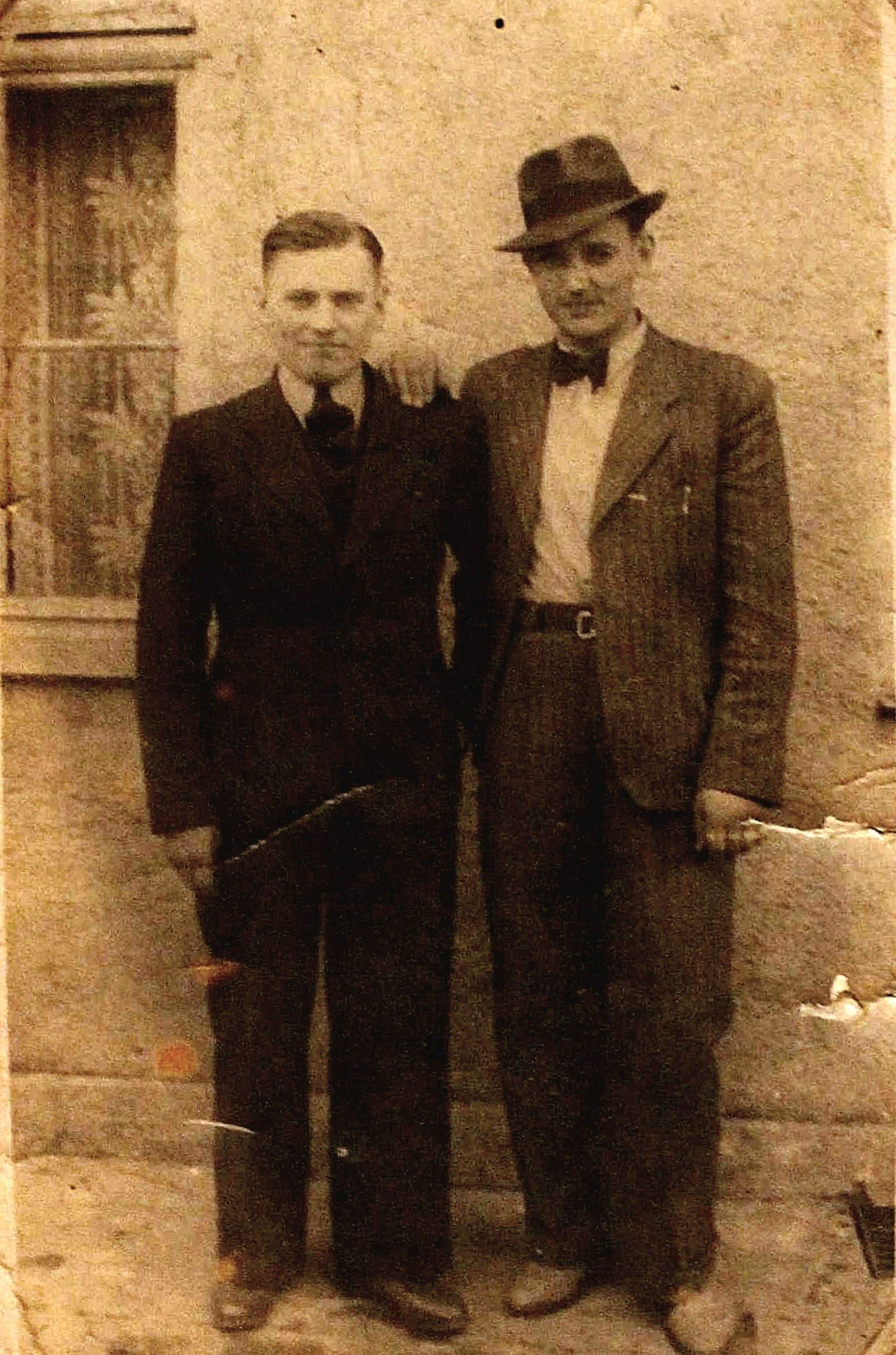 Mieszkańcy Panie Dunikowskie : Alicja (żona Stanisława) i Danuta (z d. Piątek , żona Adama) pozują do zdjęcia ze Stefanem Dunikowskim.