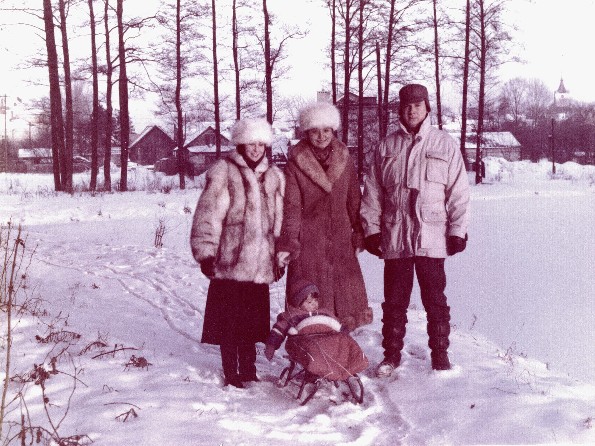 Rodzinne Rodzeństwo – pan Jan Gniewek i pani Maria Sokołowska (z d. Gniewek) wraz z siostrą , pozują do zdjęcia przed drewnianym domem państwa Sokołowskich na ulicy Mickiewicza w Głogowie.