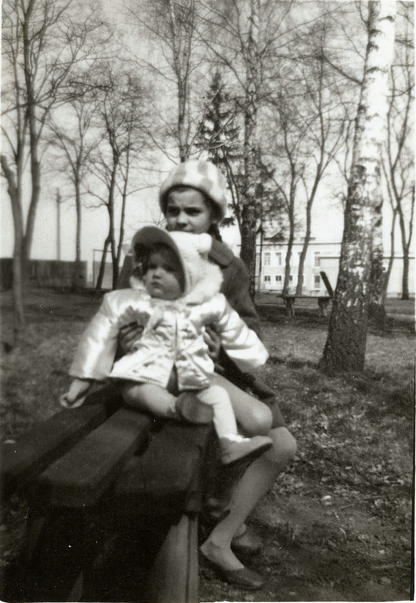 W tle po prawej widoczny jest budynek przedszkola a po lewej drewniane ogrodzenie boiska sportowego. Zdjęcie datowane – 4.04.1961 r Zdjęcie pochodzi z kolekcji państwa Tarków. Dziękuję za udostępnienie zdjęć.