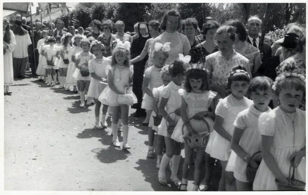 Dziewczynki sypią kwiaty. Zdjęcia niedatowane – prawdopodobnie lata 70-te XX w. Zdjęcia pochodzą z kolekcji państwa Tarków. Dziękuję za udostępnienie zdjęć.