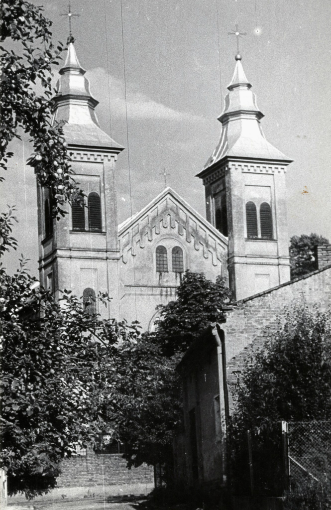 Kościół i uroczystości kościelne Mocno uszkodzone ale ciekawe , pamiątkowe zdjęcie zrobione po procesji Bożego Ciała w Głogowie na tle kościoła parafialnego. Na zdjęciu m.in. Ks. Ramocki i ks. Forysiewicz.