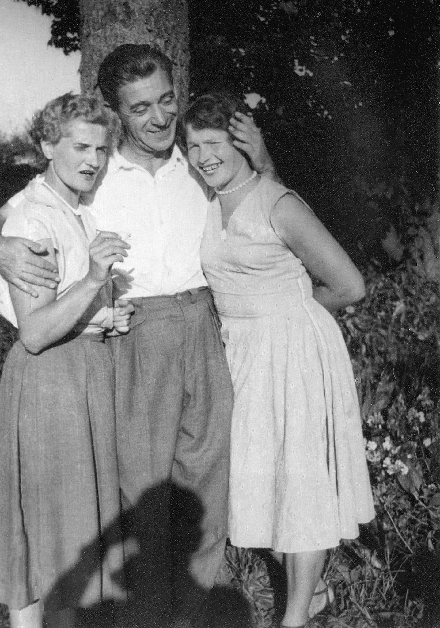 Mieszkańcy Panie : Anna Kryda , Maryla Gniewek i Jadwiga Gniewek pozują do zdjęcia na plantach w Głogowie.