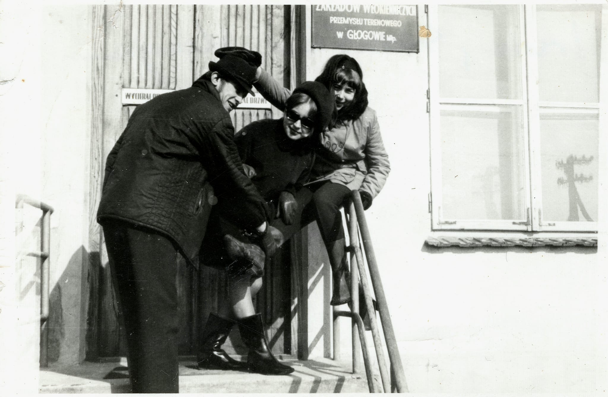 Obok drzwi widoczny szyld „….Zakładów Włókienniczych Przemysłu Terenowego w Głogowie Młp.” Zdjęcie niedatowane – 1968-75 r. Zdjęcie pochodzi z kolekcji p. Elwiry Grochali. Dziękuję za udostępnienie zdjęcia.