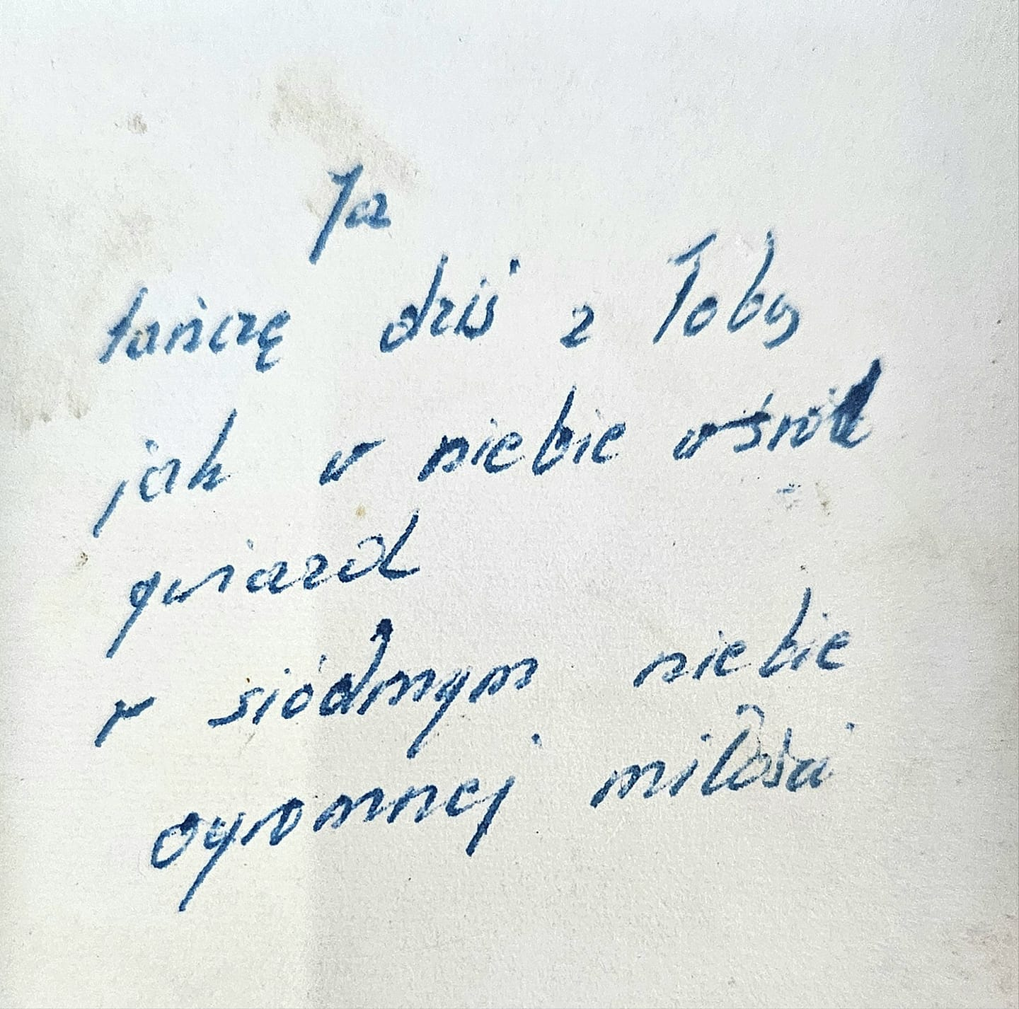 Tak brzmi dedykacja na odwrocie tego romantycznego zdjęcia , na którym czule patrząc sobie w oczy tańczy pani Janina Domańska z przyszłym mężem Jackiem.