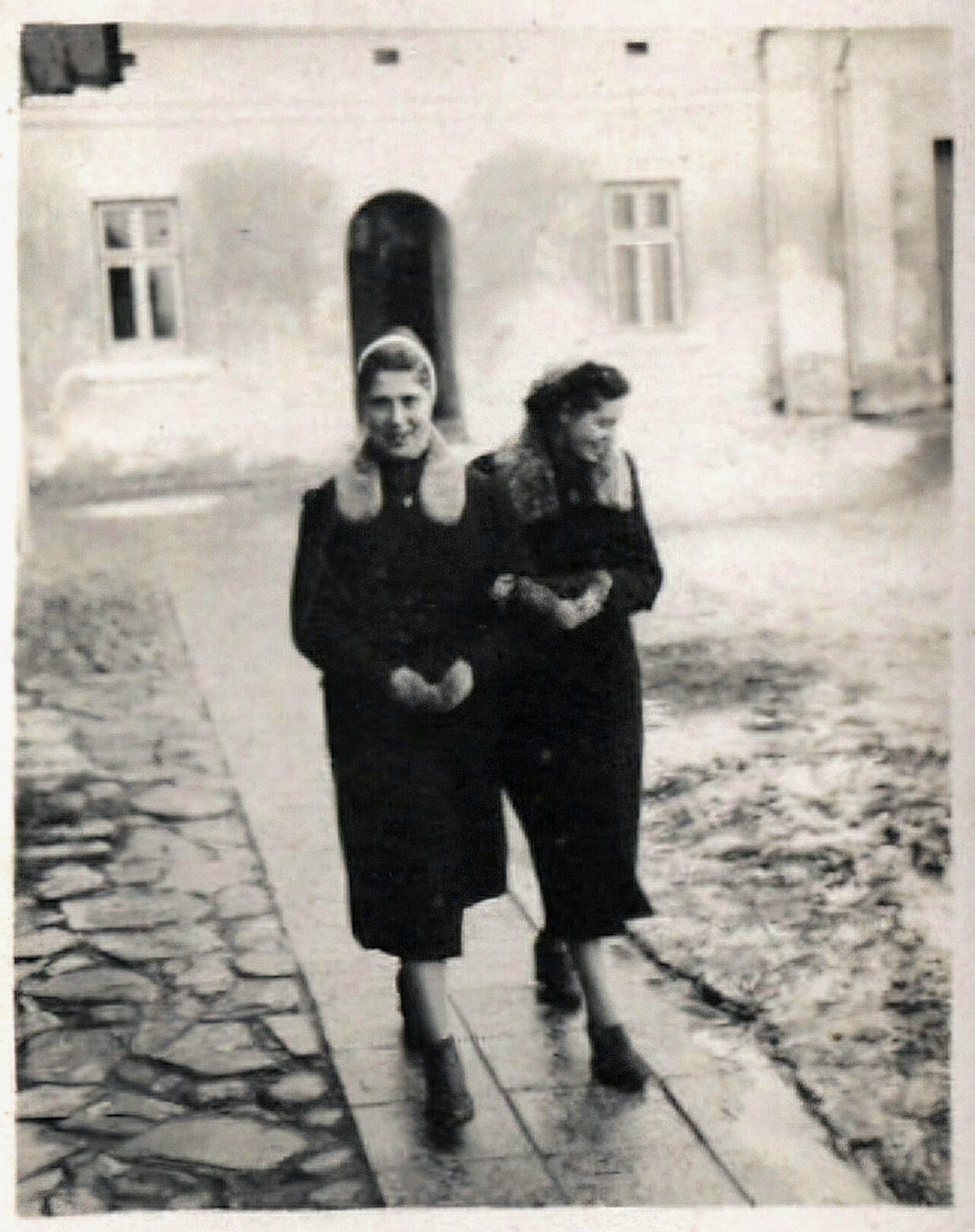 Mieszkańcy · Rynek Pani Irena Miazga z córką Sylwią na spacerze zimą na głogowskim Rynku. W tle planty i prawdopodobnie budynki południowej części Rynku.