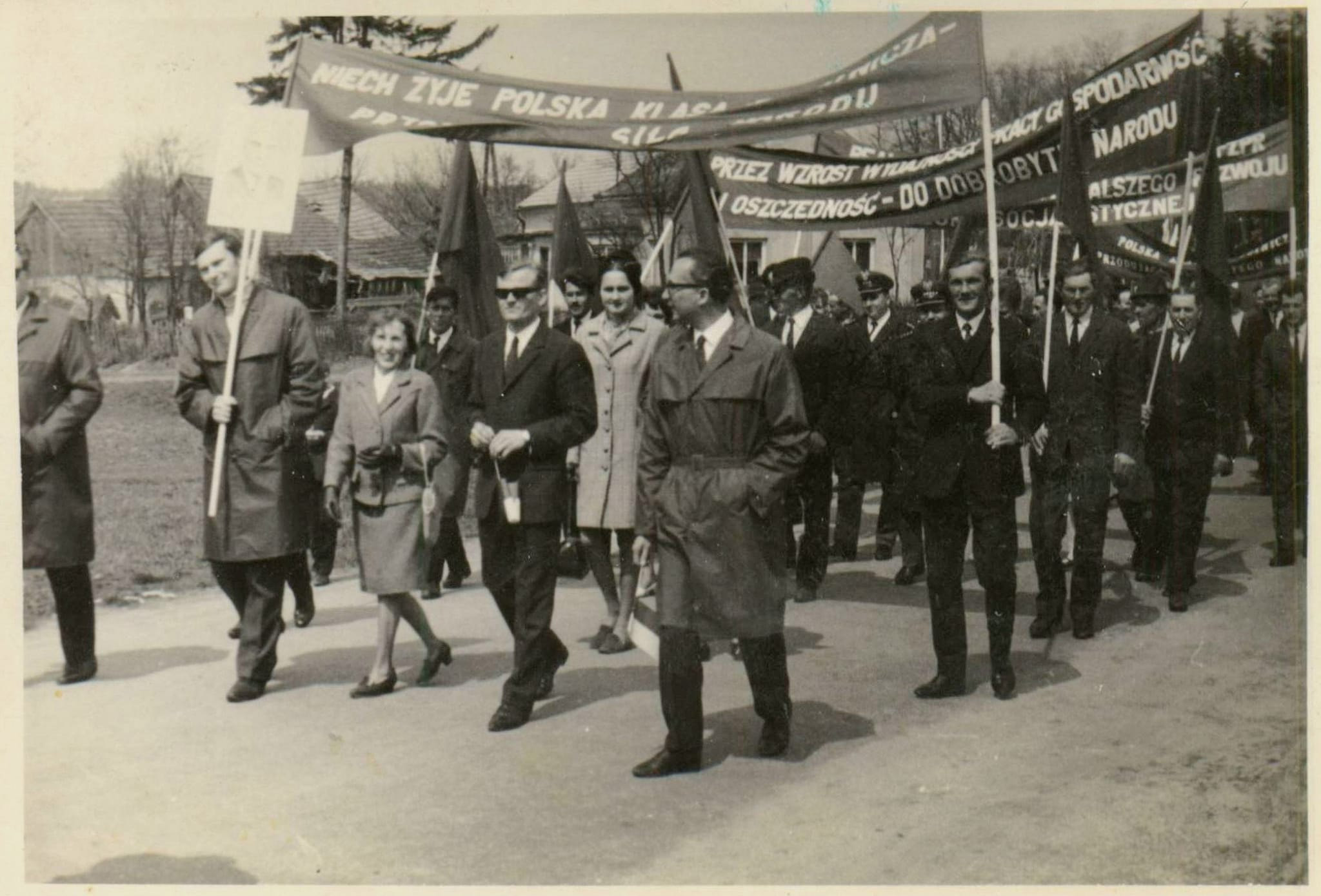 Pałac / Fabryka · Wydarzenia Jeden z pochodów pierwszomajowych w Głogowie. Ulicą obok ratusza maszerują pracownicy „Technitexu”.