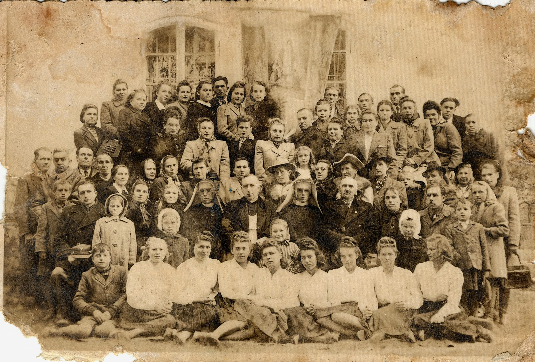 Edukacja i szkoła · Kościół i uroczystości kościelne Grupa dzieci , pod opieką zakonnic , bawi się obok budynku ochronki w Głogowie. Jednym z dzieci jest śp. p. Ryszard Porada.