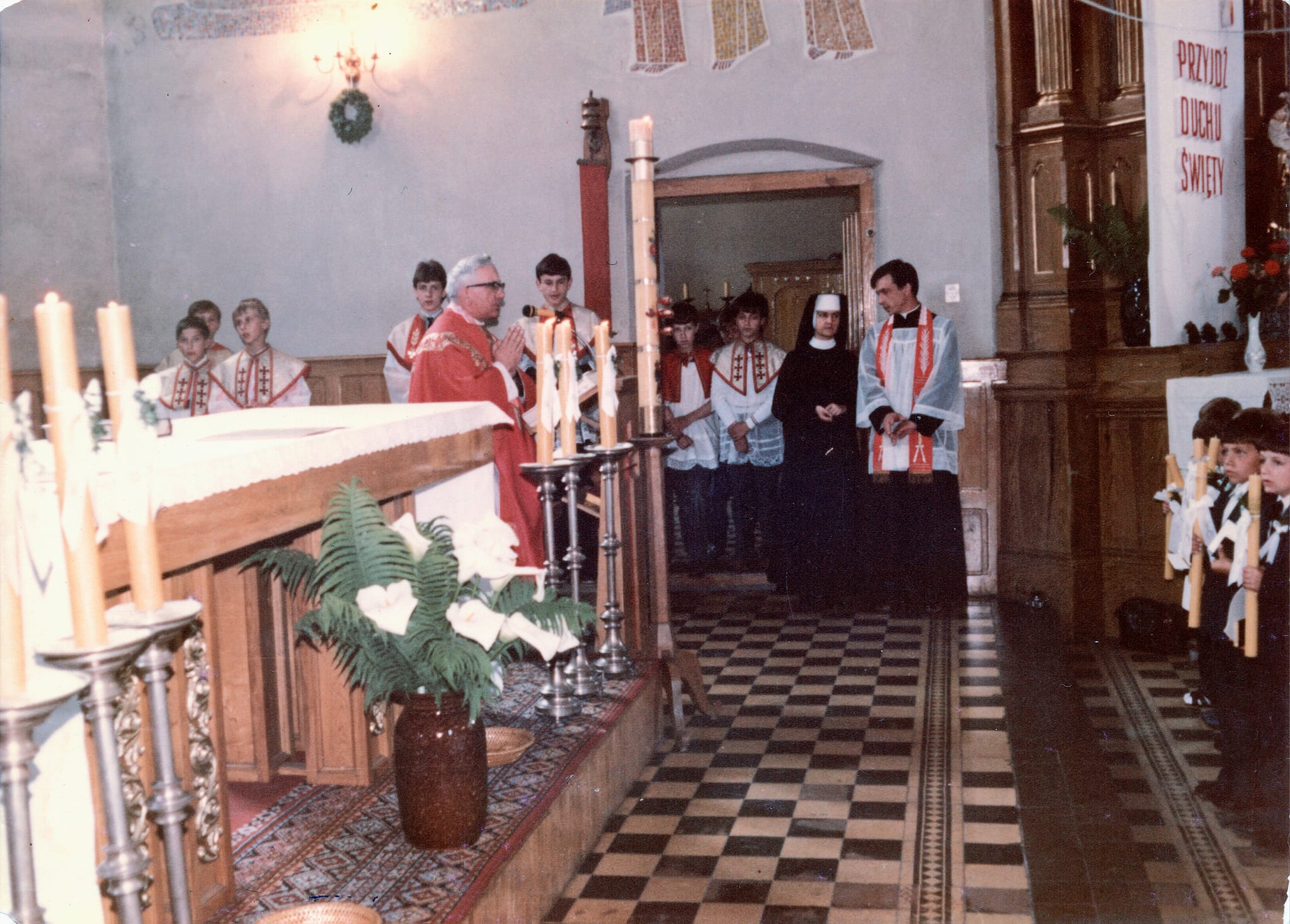 Kościół i uroczystości kościelne · Mieszkańcy Procesja Bożego Ciała na głogowskim Rynku.W tle fragment domu nr 44 i dom nr 45 , jeszcze przed przebudową.